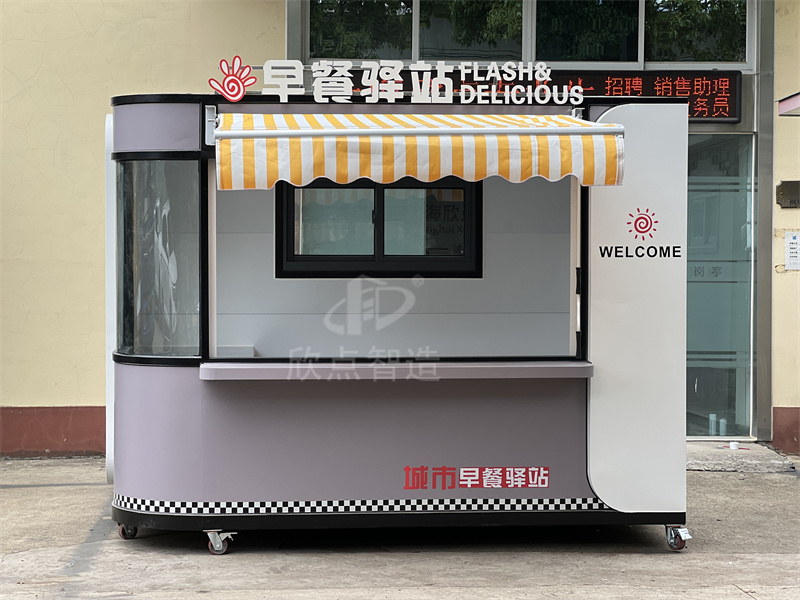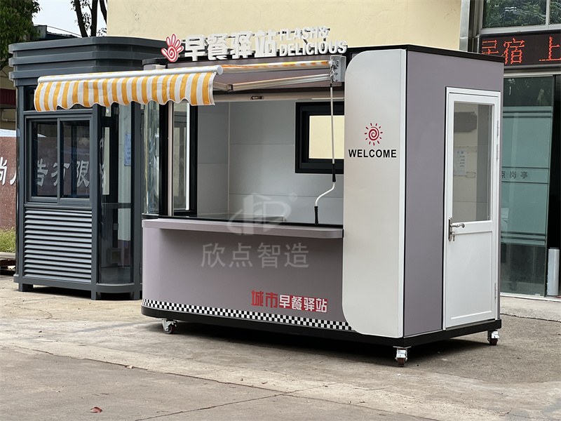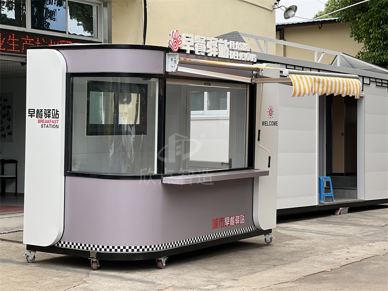 一般戶外售貨亭的要求,都是以鍍鋅鋼管作為框架,再加上金屬板材外觀防腐耐用。這樣的可移動售賣亭,外觀時尚現(xiàn)代,內(nèi)部空間大。