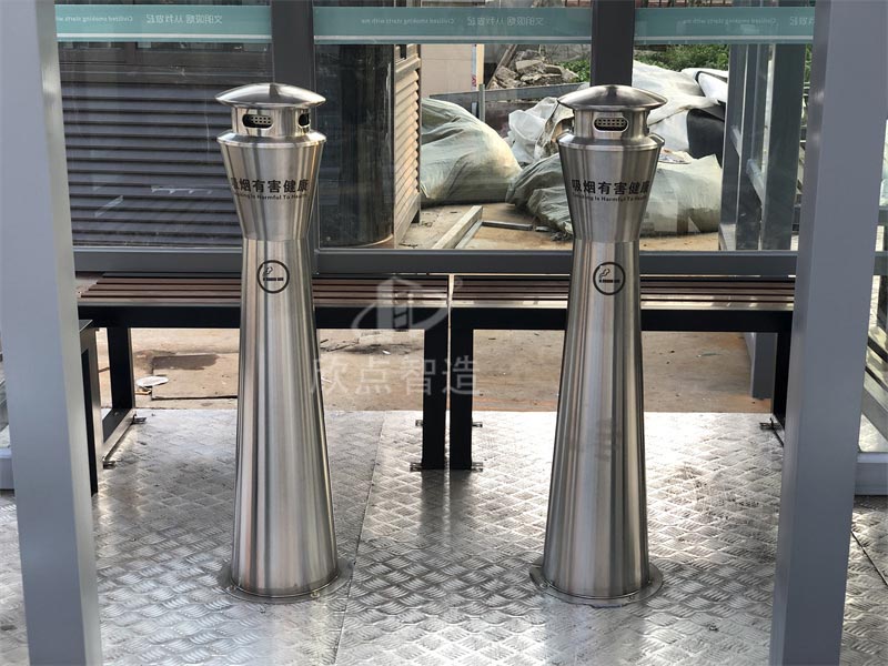 吸煙亭內(nèi)部配置:滅煙桶、休息椅
