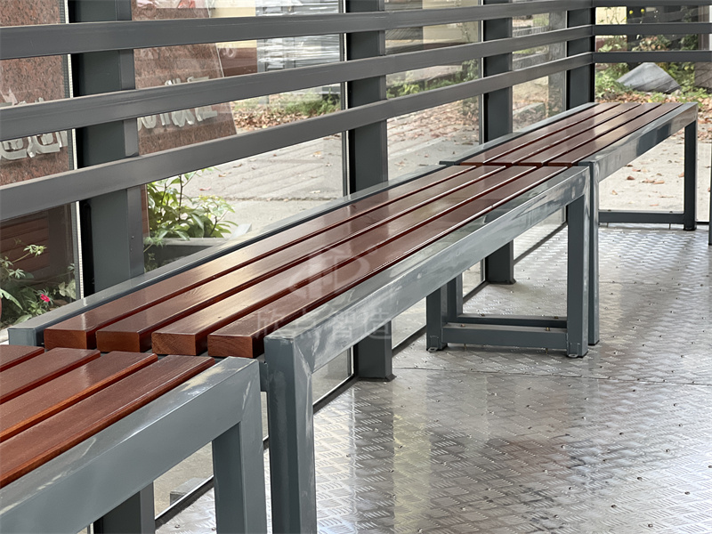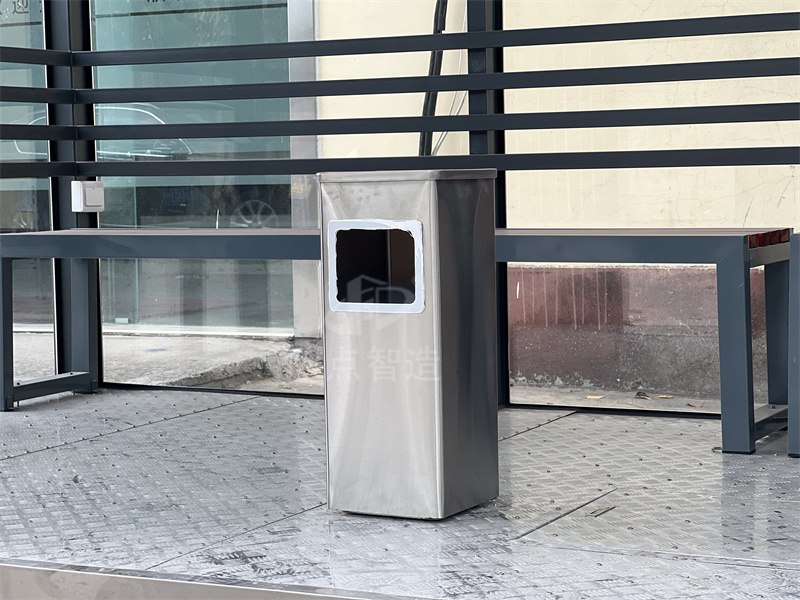 吸煙亭內(nèi)部配置:滅煙桶、休息椅