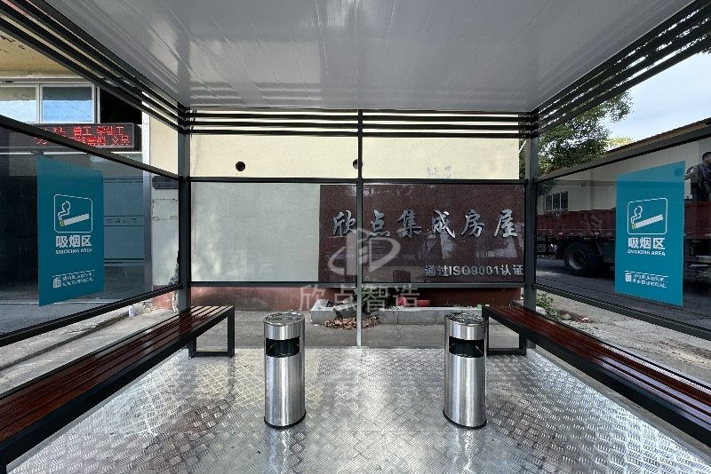 欣點(diǎn)移動(dòng)吸煙亭完美出貨!高3米,寬2.5米,長(zhǎng)3.5米。下面跟著小編詳細(xì)觀賞一下吧~