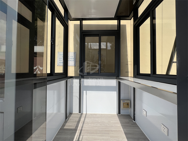 3、使用空間更合理化。用戶在定制保安崗?fù)r,都會根據(jù)其里面工作的人數(shù)和需裝置的辦公設(shè)備及保安崗?fù)さ姆胖脜^(qū)域的大小來確定崗?fù)さ某叽?,廠家還會來根據(jù)你的尺寸來設(shè)計空間,使空間更最大化的利用起來,這樣使保安崗?fù)な褂每臻g更加合理化。