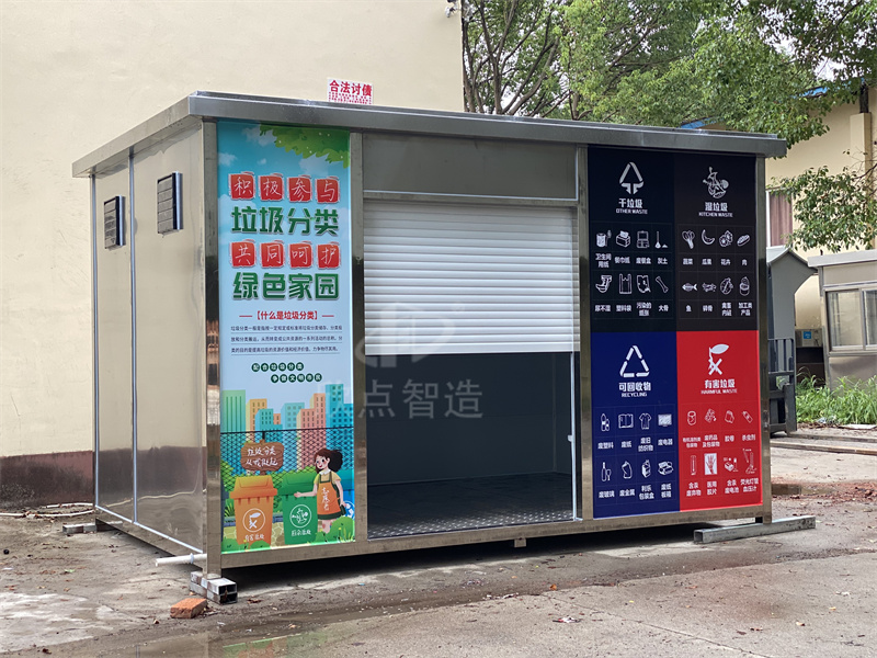 一般戶外垃圾房的要求,都是以鍍鋅鋼管作為框架,再加上金屬雕花板為外觀。這樣的智能垃圾分類房,外觀時(shí)尚現(xiàn)代,內(nèi)部空間大,根據(jù)人流量來(lái)選擇增加減少垃圾投放口。