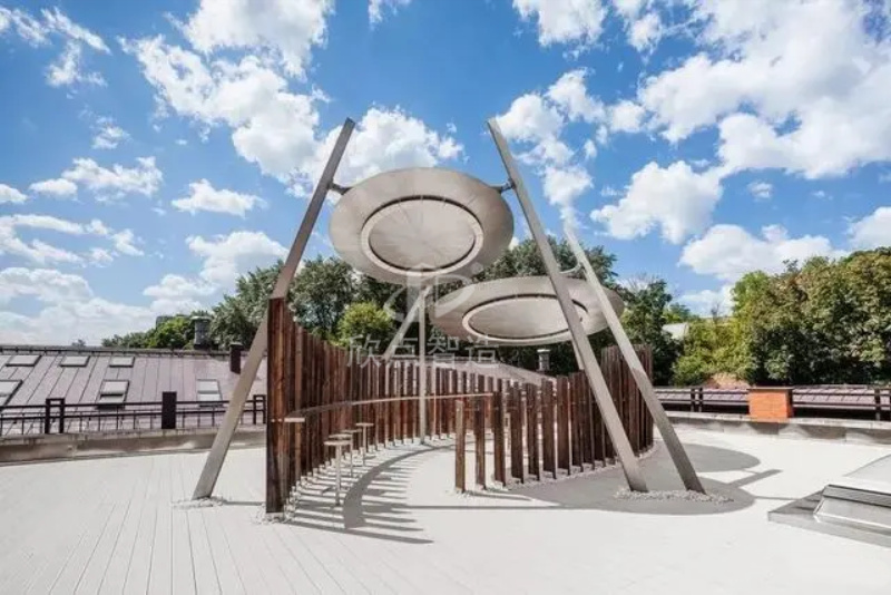 下雨時(shí)可避雨,晴天時(shí)能遮陽(yáng),黑夜里還有光,這是想舒舒服服抽煙的人對(duì)于吸煙區(qū)的基本功能的要求。莫斯科的這一頗具藝術(shù)感的涼亭裝置位于辦公樓樓頂,是大樓專(zhuān)門(mén)設(shè)計(jì)的吸煙區(qū)。設(shè)計(jì)師選用了鋼材、古木紋板和大理石作為主要材質(zhì),并在遮陽(yáng)區(qū)內(nèi)放置了桌椅。這樣的設(shè)計(jì)不僅能有效的吸引吸煙者自覺(jué)前往,還為煙民們提供了一個(gè)交流平臺(tái),大大的減少了隨地扔煙頭的行為,也減小二手煙對(duì)其他人的傷害!